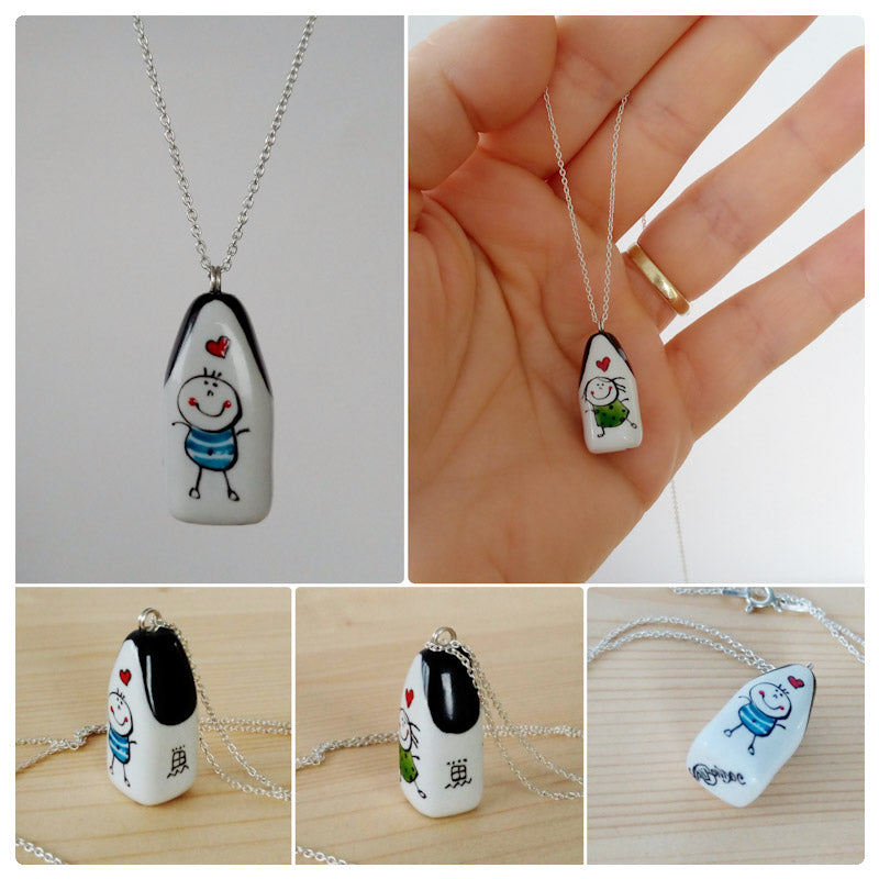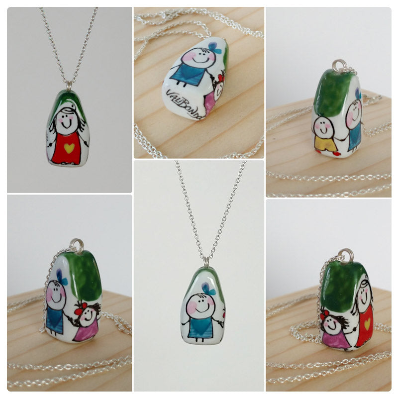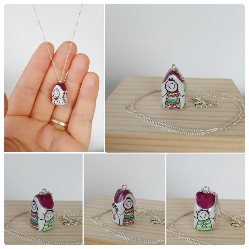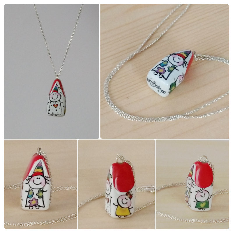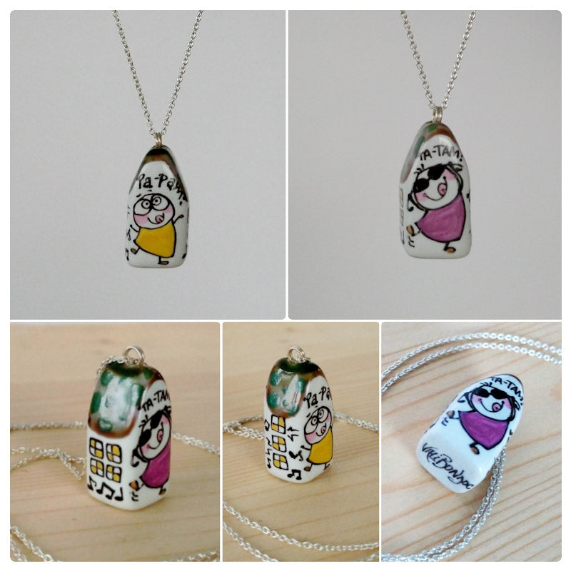 Căsuță pandantiv din porțelan modelată și pictată manual cu multă atenție pe detalii.