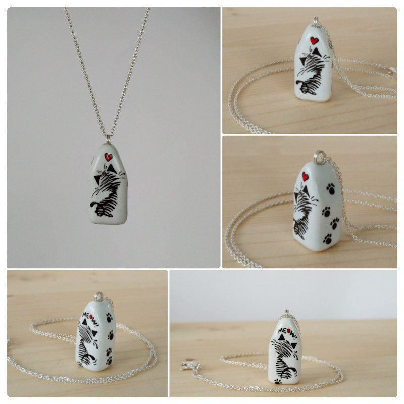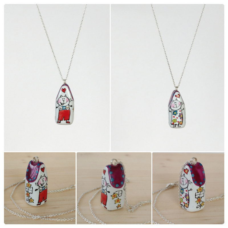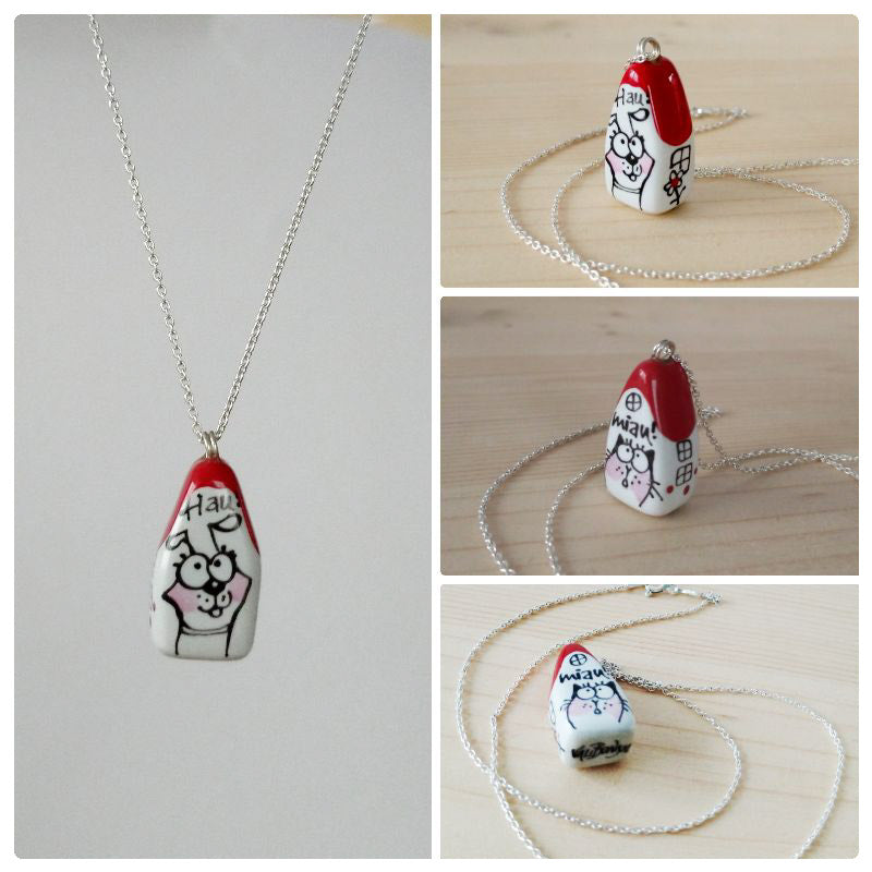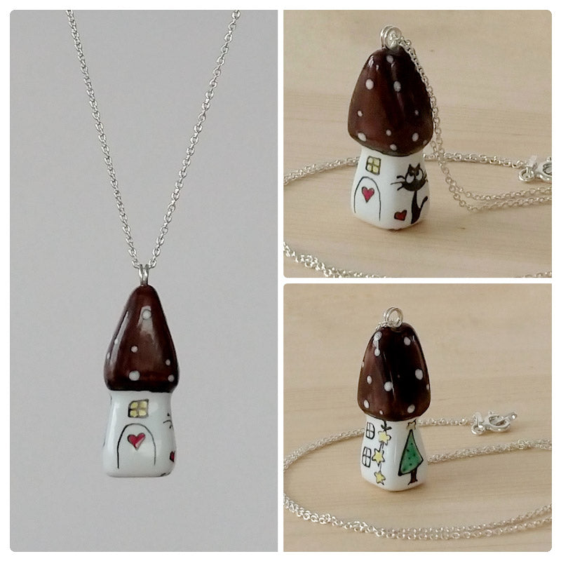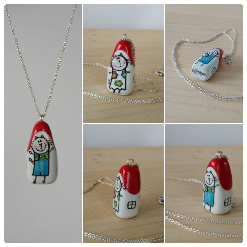 Căsuță pandantiv din porțelan modelată și pictată manual cu multă atenție pe detalii.
