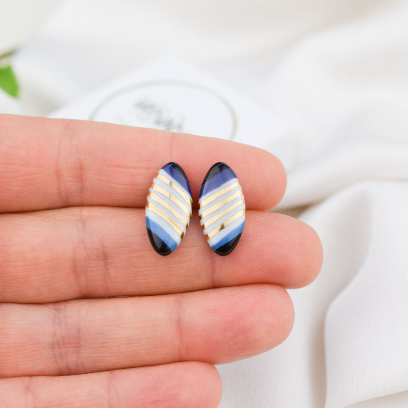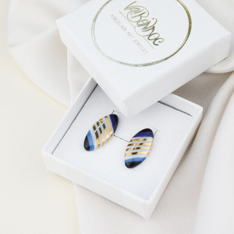 Cercei butoni din portelan - Cercei cu dungi elipsa