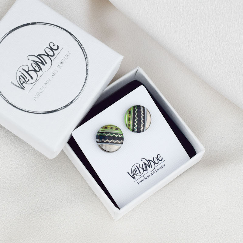 Cercei din porțelan, formați și pictați manual, cu monturi din argint 925 -fără nichel