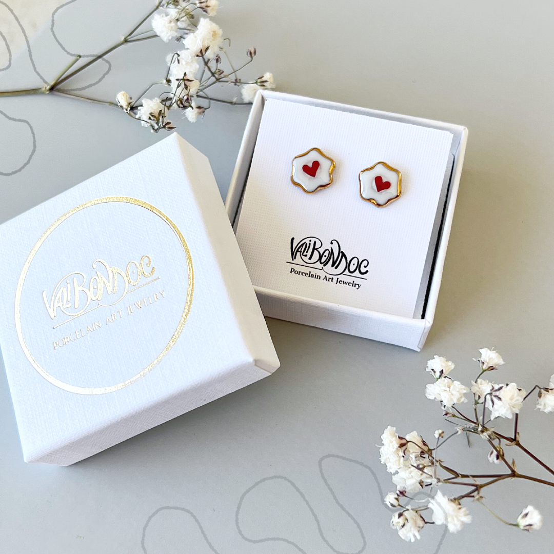 Cercei butoni din portelan - Floricica